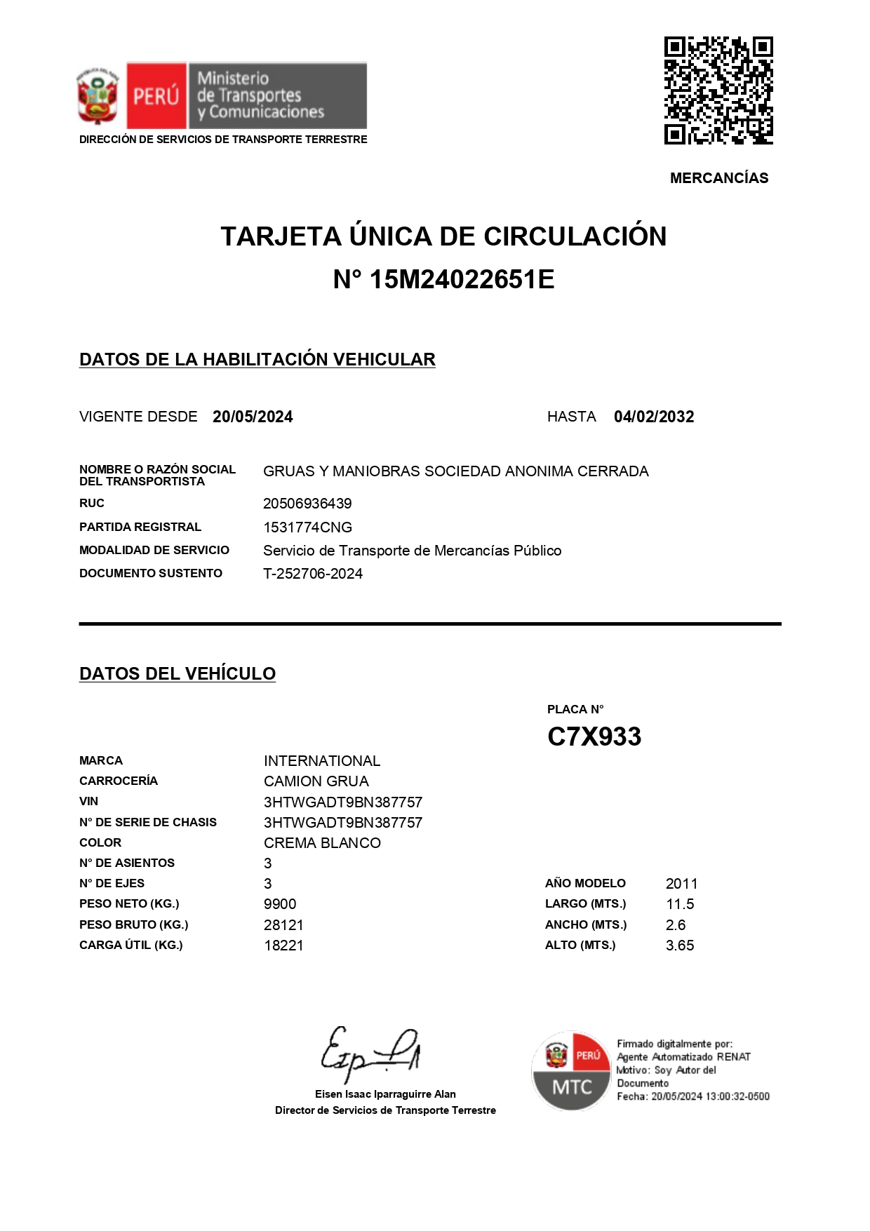 Tiene vigencia indeterminada y se otorga antes del inicio de la ejecución de las obras de infraestructura, conforme a lo establecido en el numeral 37.2 del Artículo 37 del Reglamento Nacional de Gestión de Infraestructura Vial, aprobado por el Decreto Supremo N° 034-2008-MTC y modificado por el Decreto Supremo Nº 037-2019-MTC.